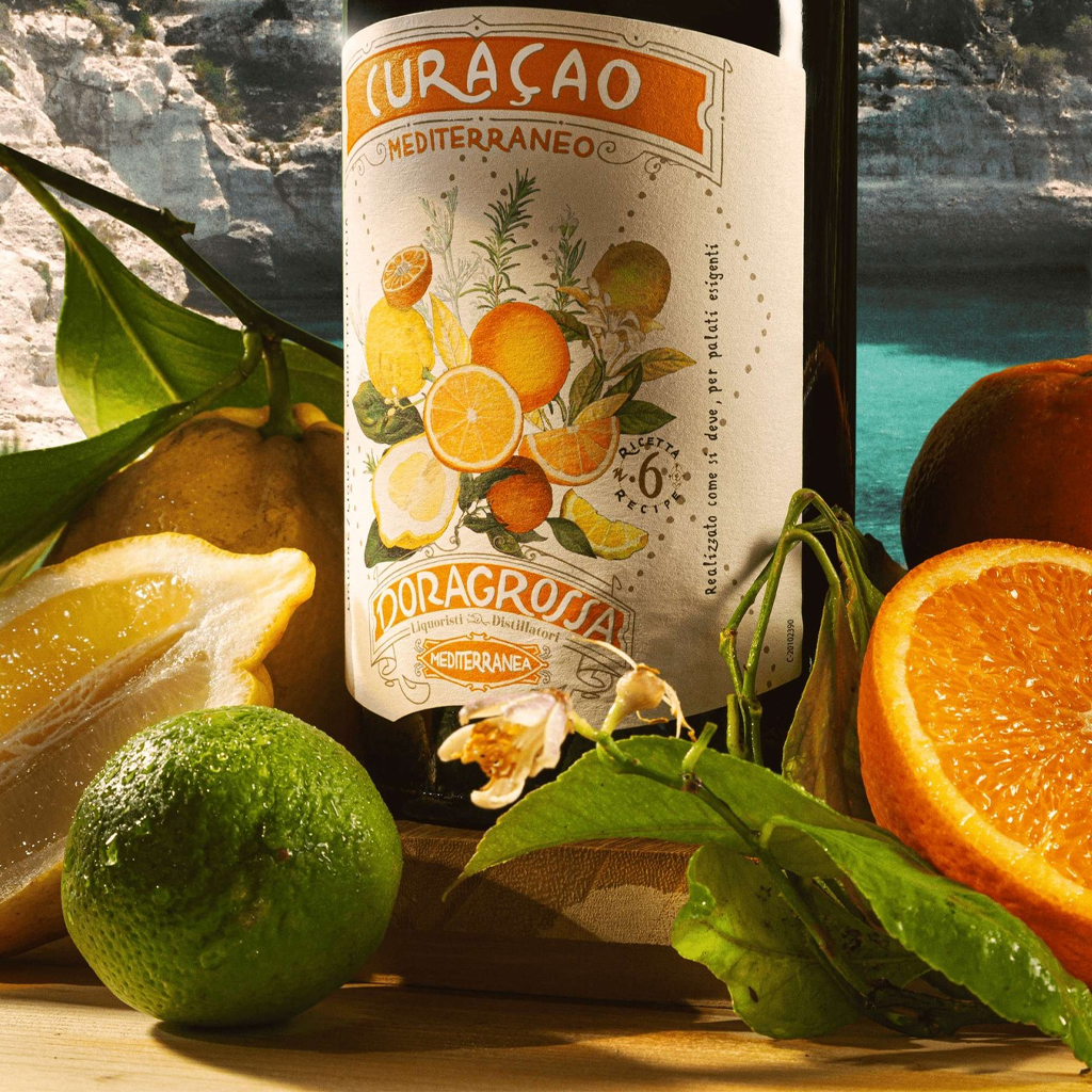 Ervaar de pittige uitbarsting van Doragrossa Mediterranea Curacao. Een eersteklas Italiaanse likeur doordrenkt met levendige mediterrane citrus voor een verfrissende smaak.